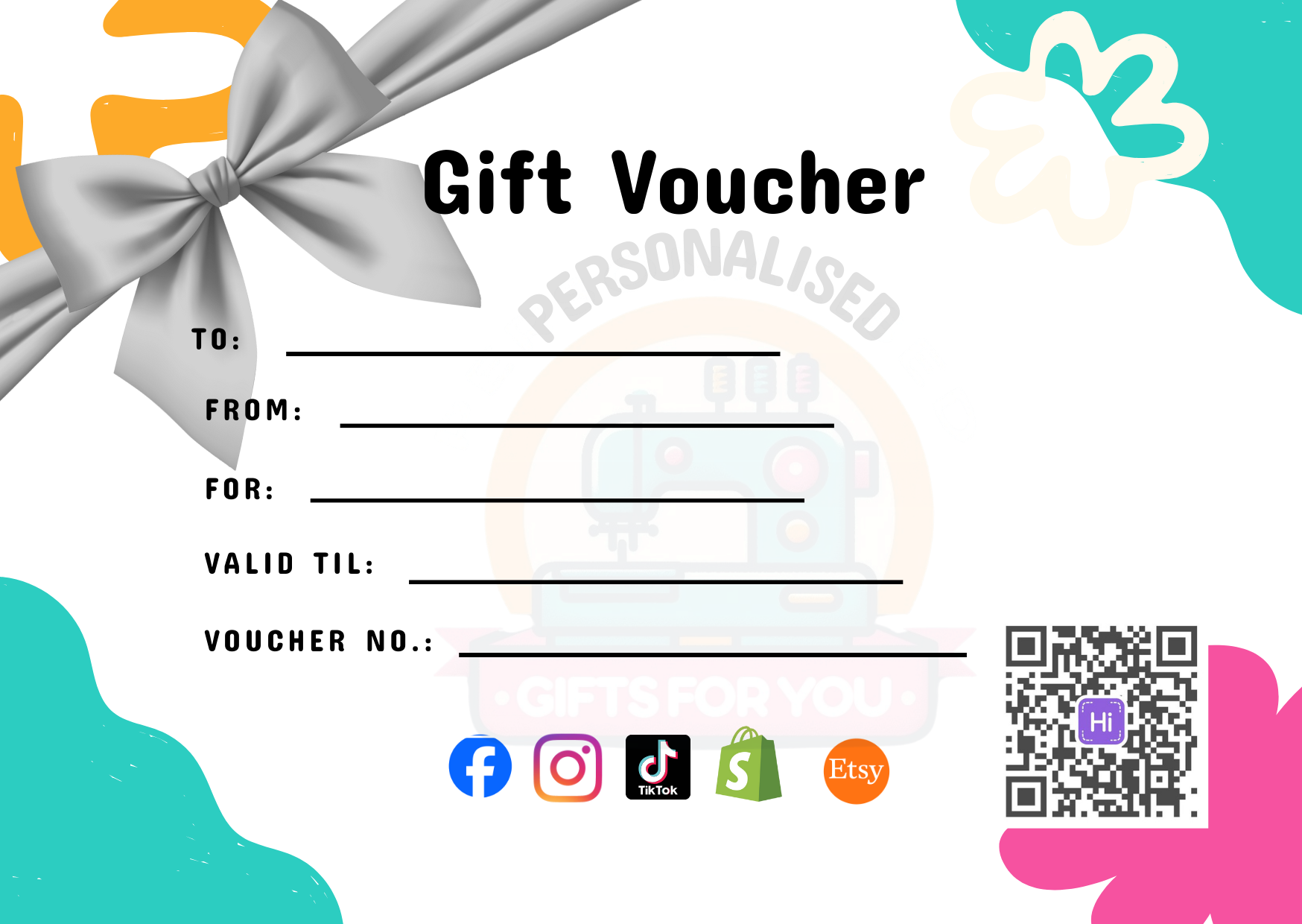 - “This certificate can be redeemed for any item available at Personalised Gifts for You, subject to stock availability.”